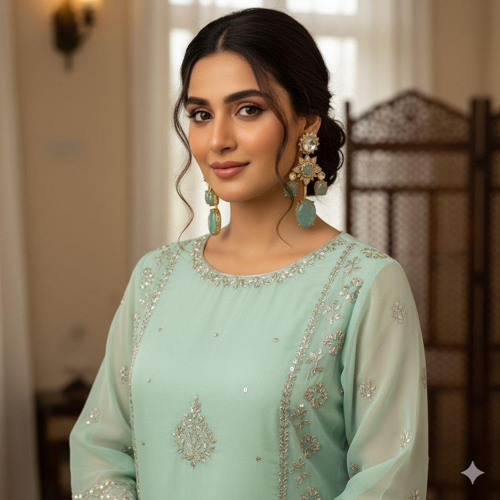 Aqua Green Cz Stone Earrings | Gold Floral Drop Earrings | Handmade Statement Jewelry