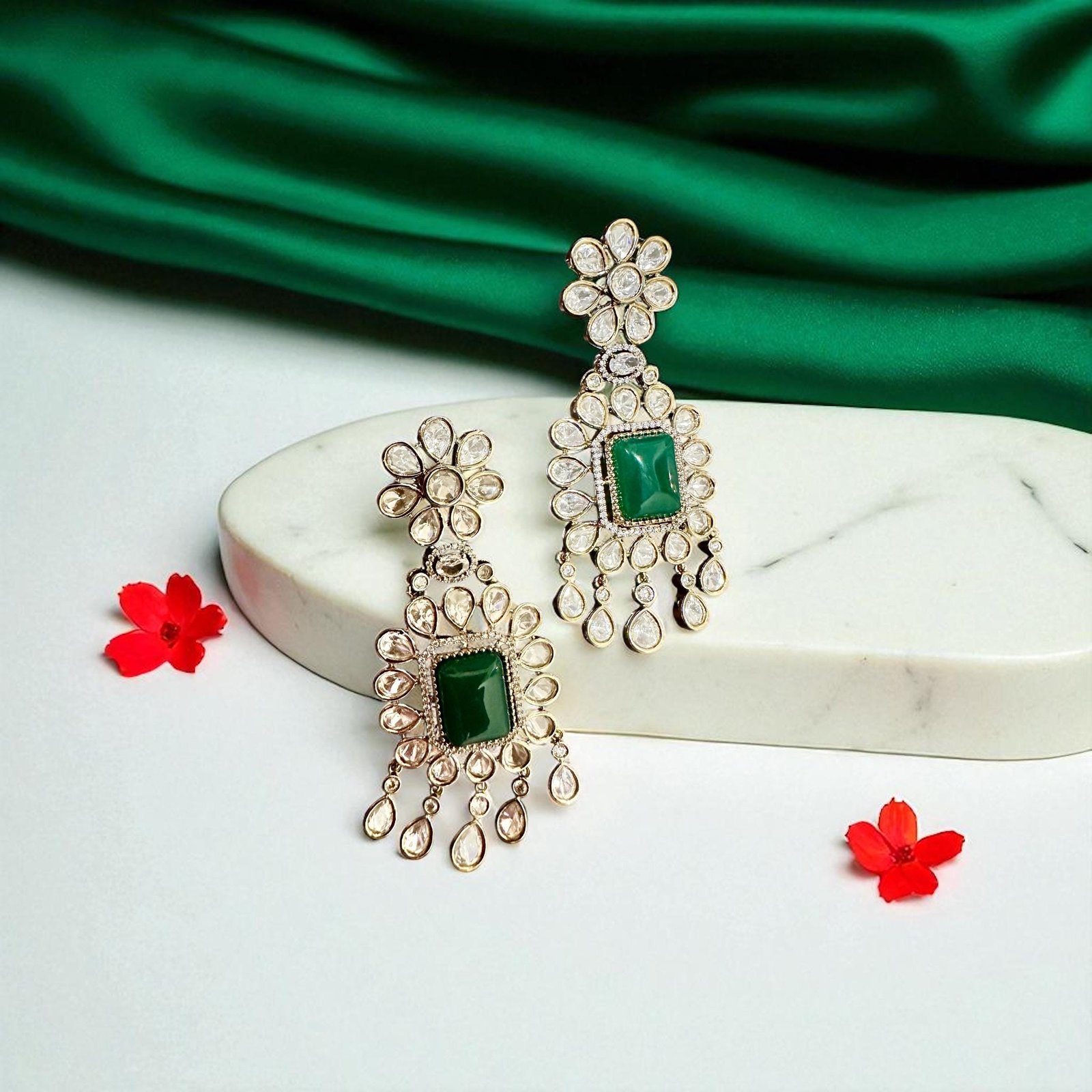 Bollywood doublet monzonite Indian Designer statement large Earrings , gold finish,Victorian,Ad stones