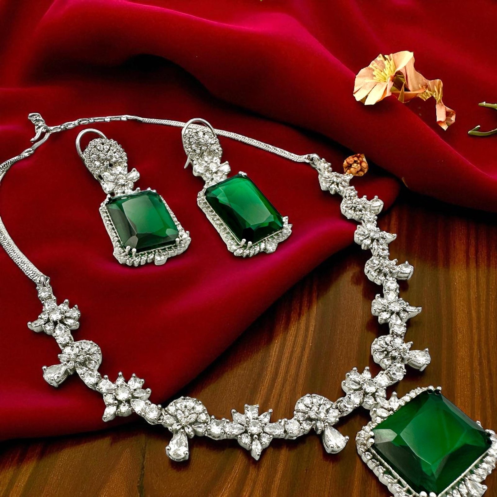Bollywood Indian designer American daimond cubic zarconia AD set,green emerald stone