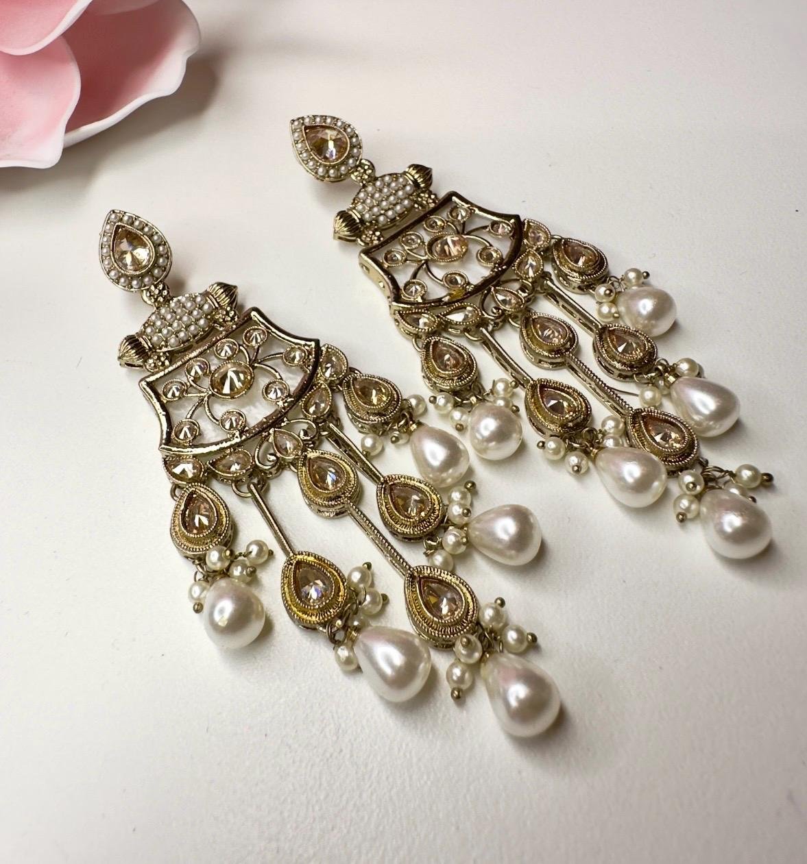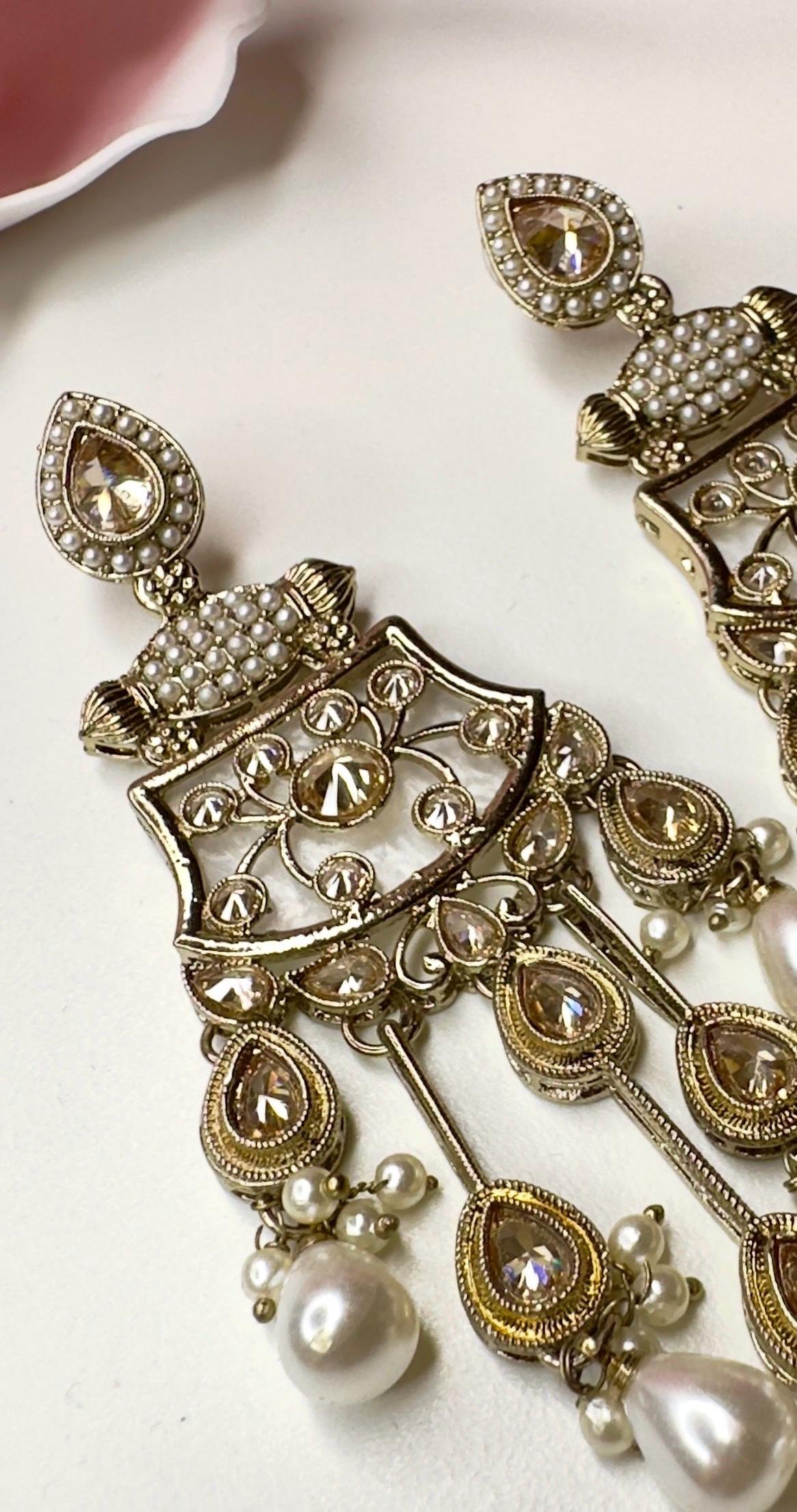 Bollywood Indian Designer Earrings in pearl champange color