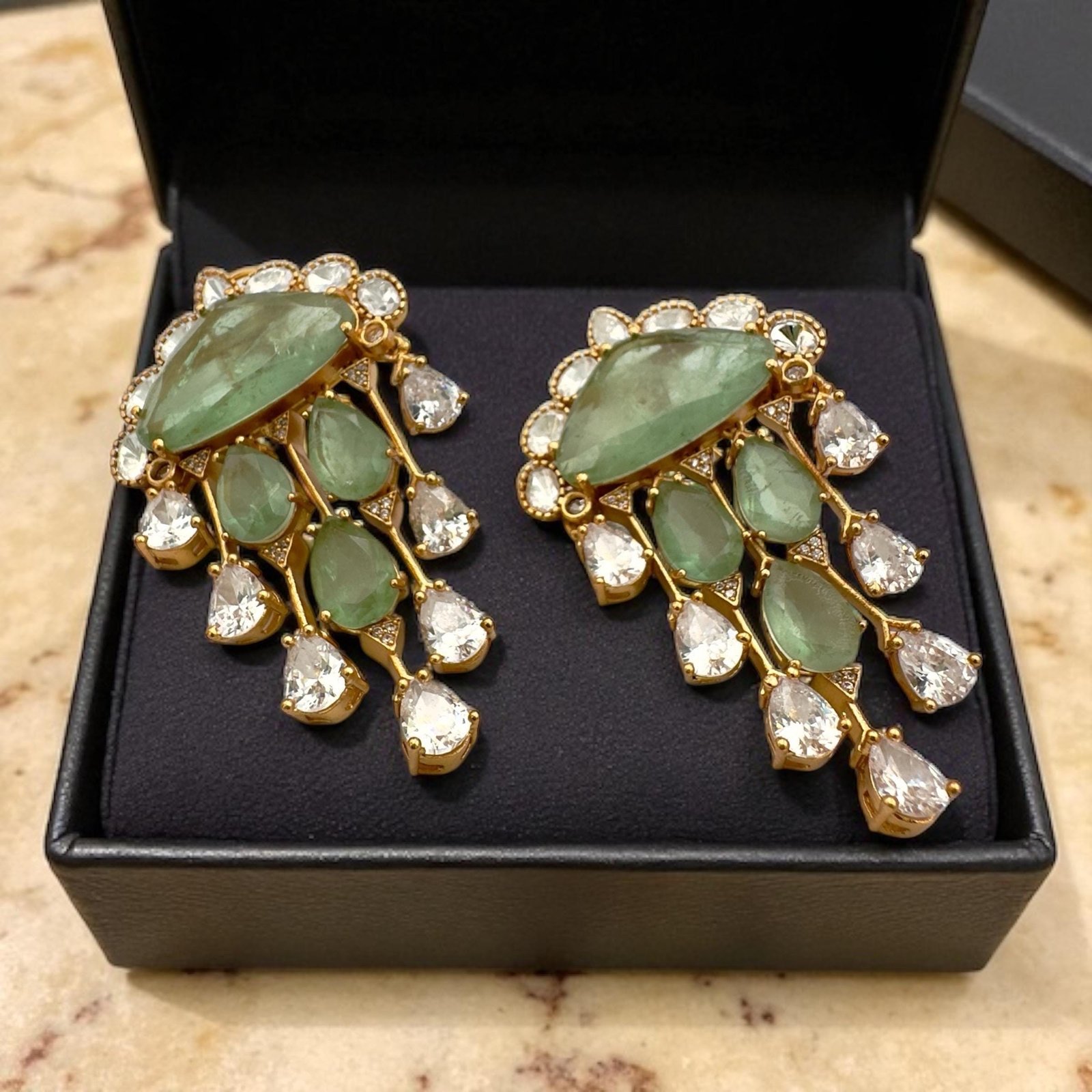 Bollywood Indian Designer high end Earrings with doublet stone, gold finish,Victorian,Ad stones