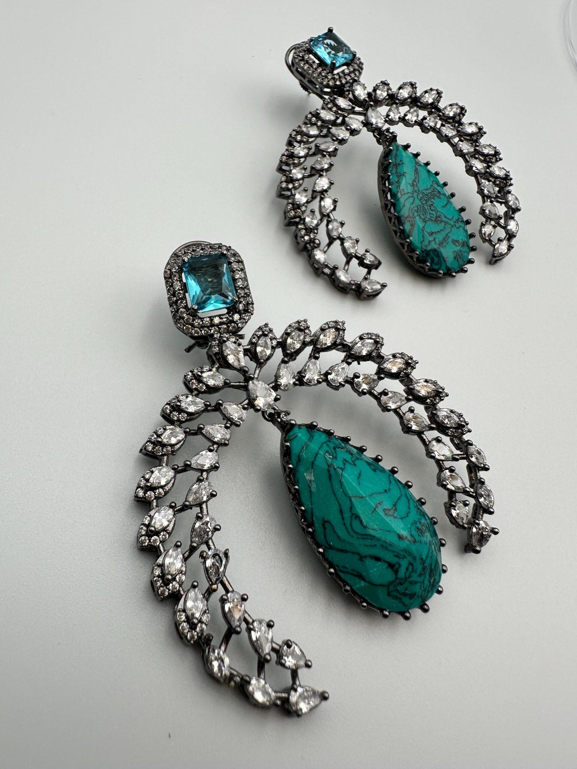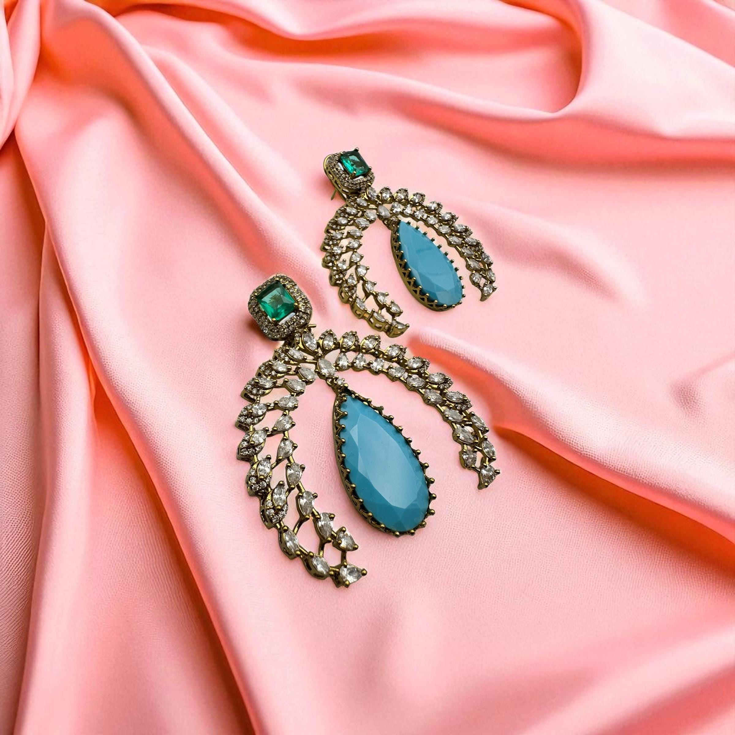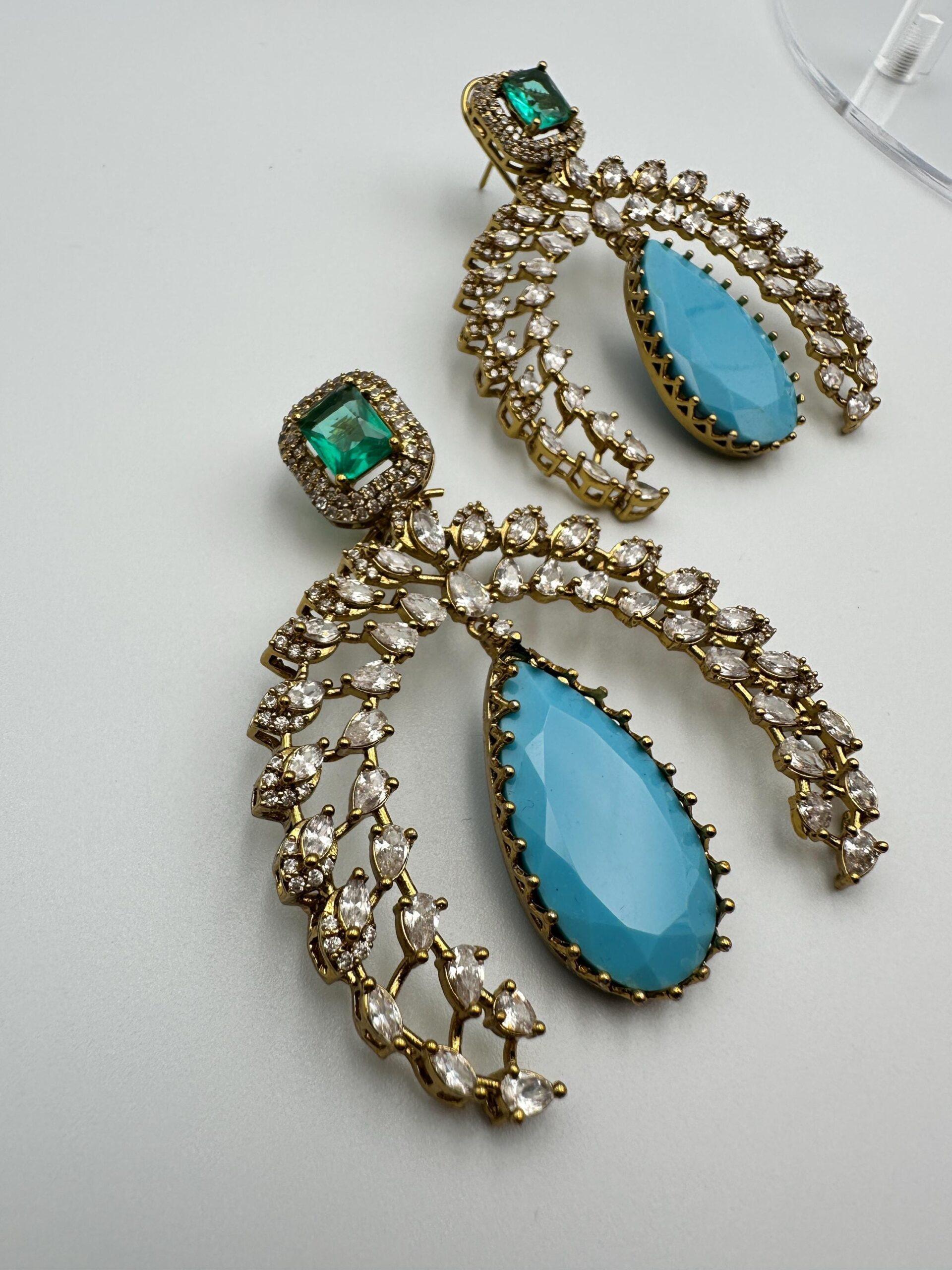 Bollywood Indian Designer high end Earrings with doublet stone,gold finish,Victorian,Ad stones