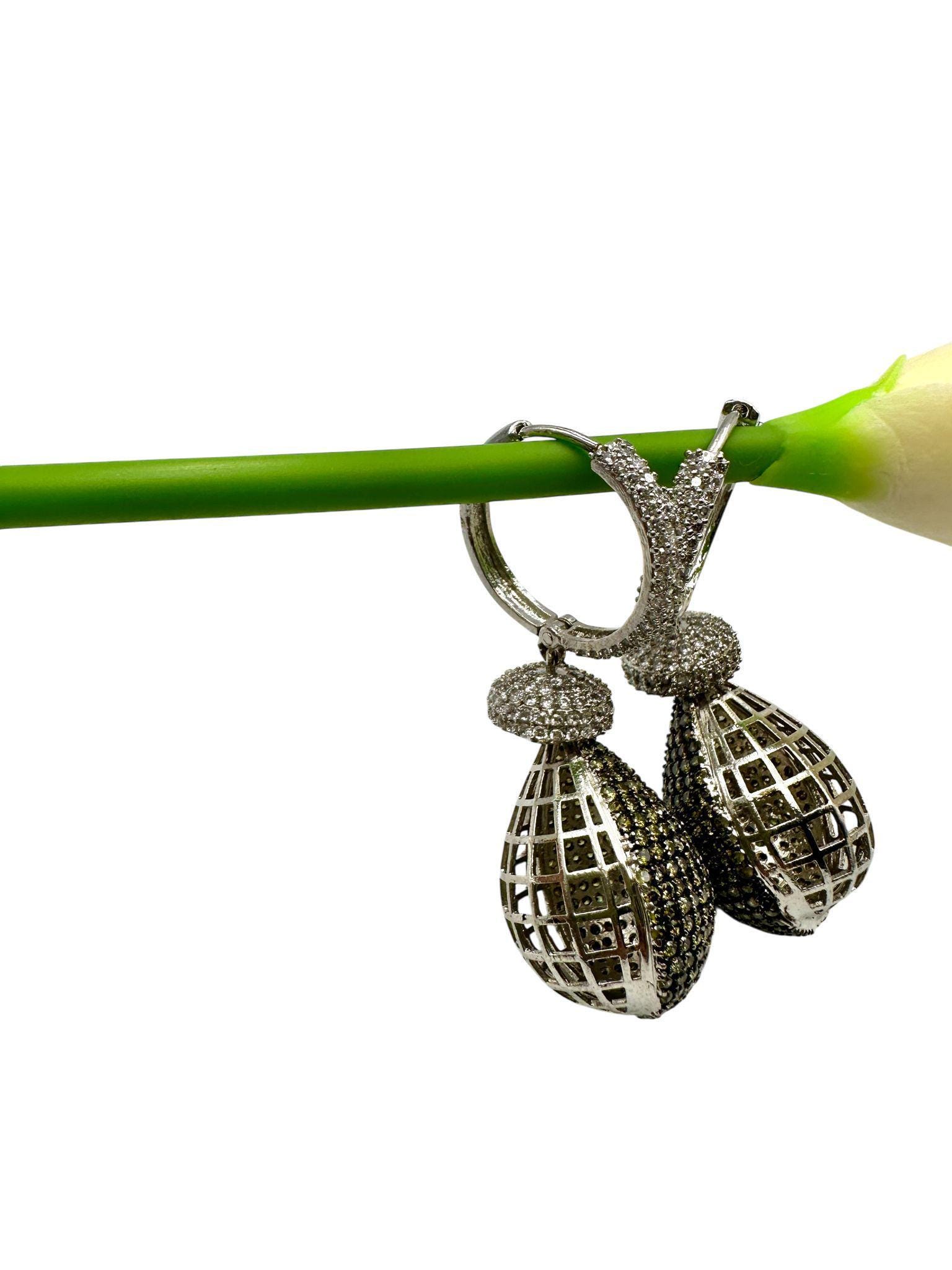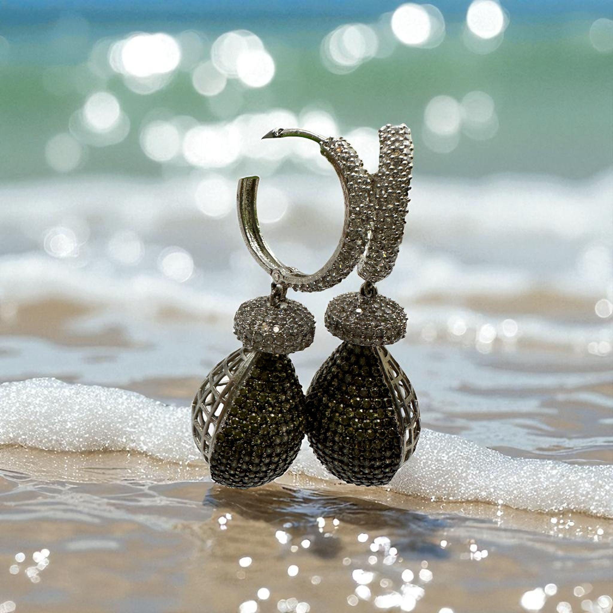 Earrings Micro Ad Settings Designer Earring – Sparkling Silver Hoops with Black Diamond Drops