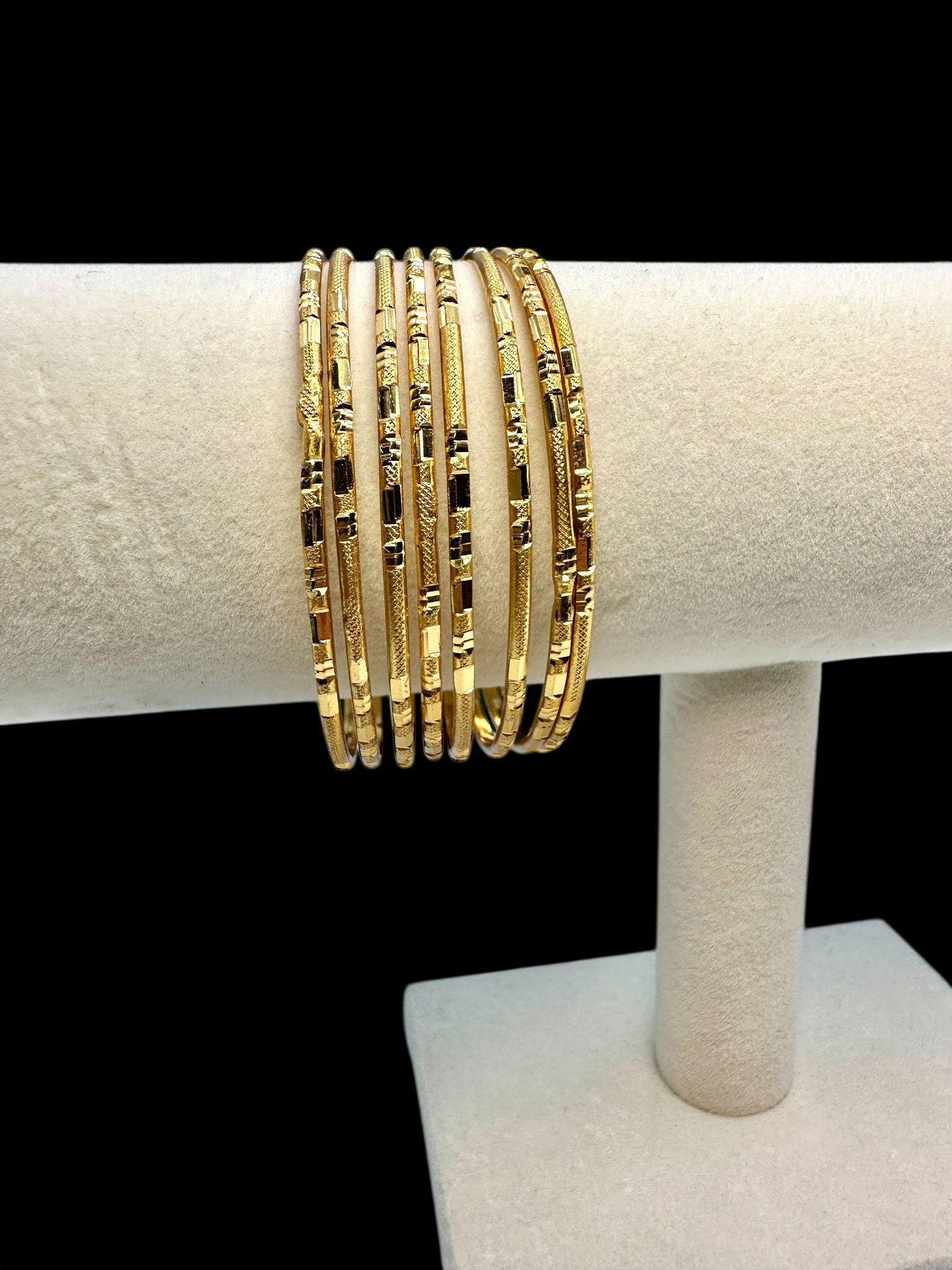 Elegant Gold Bangles Set | 6 Textured Bangles | Jewelry for Women