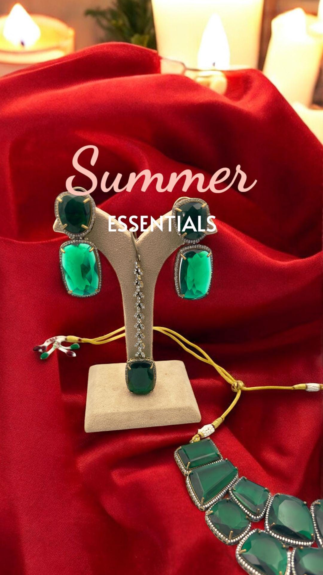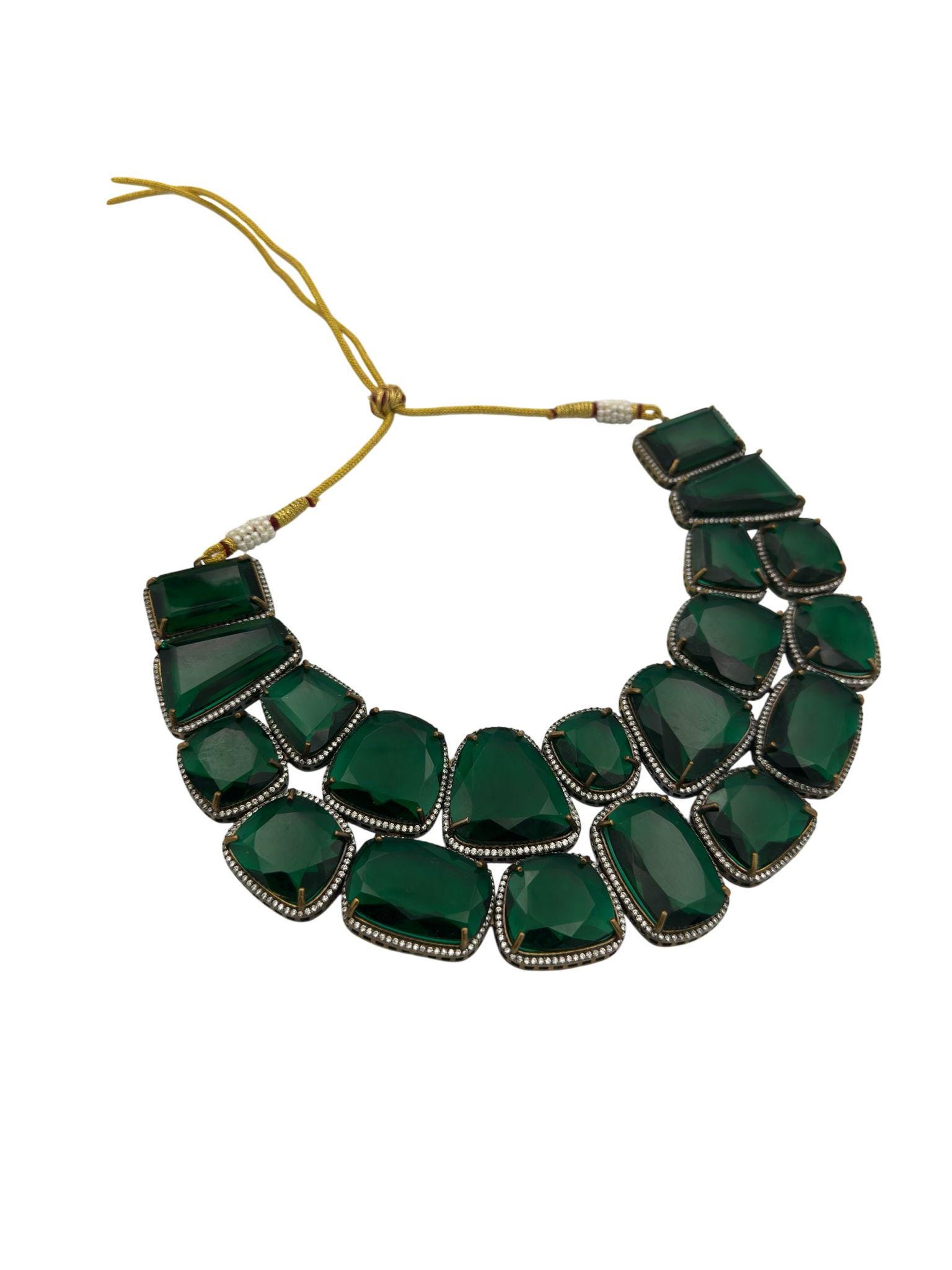 Emerald Green Necklace with Diamond Accents and matching earrings – Traditional Indian Jewelry