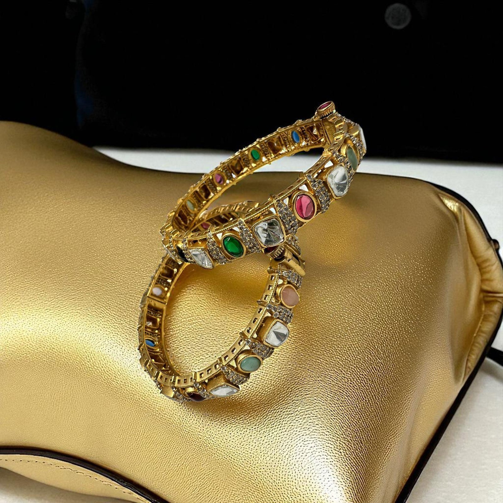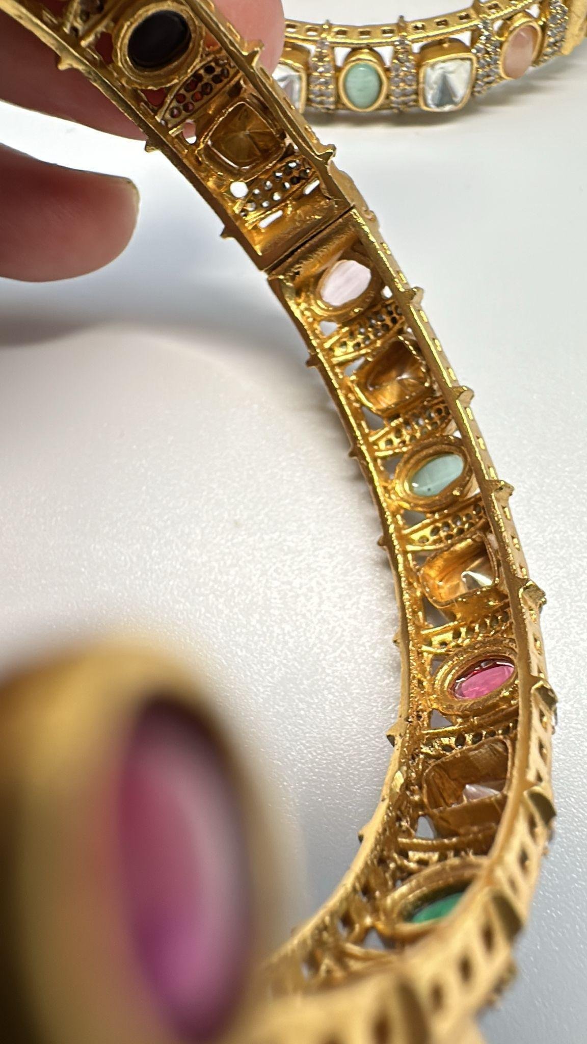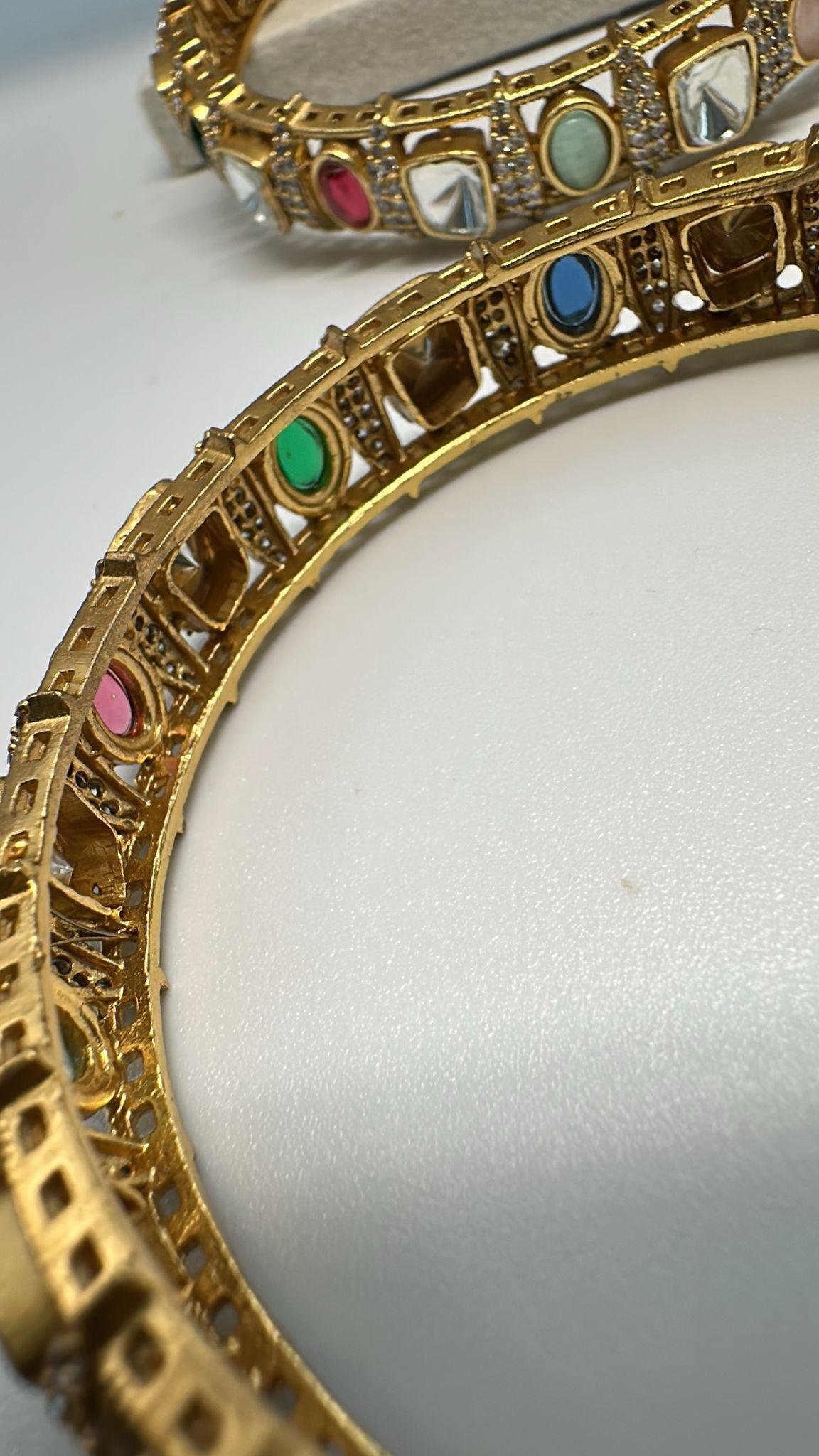 Gold plated openable bangle set with Cz stones and Kundan with multi stone size 2.6 standard