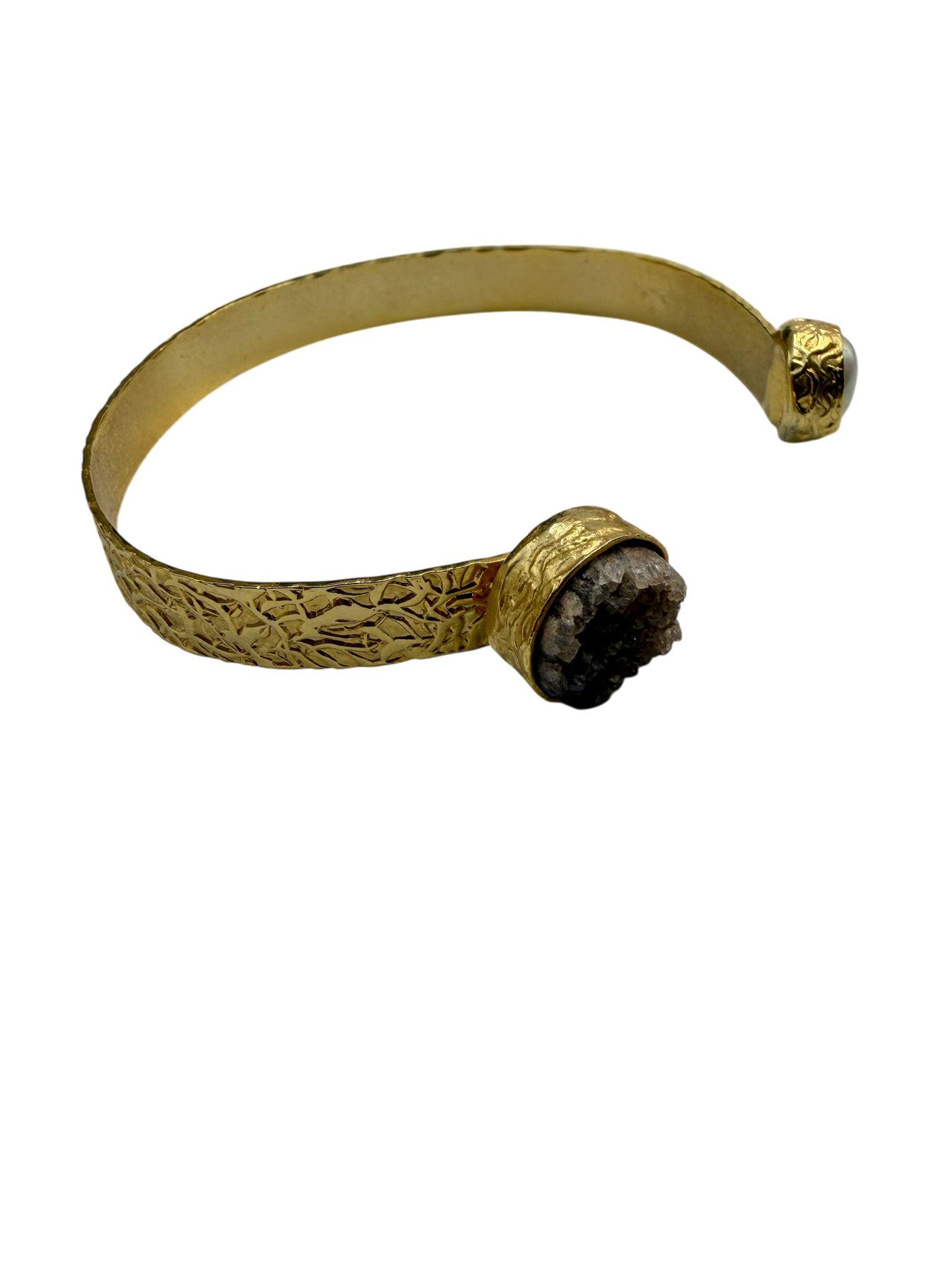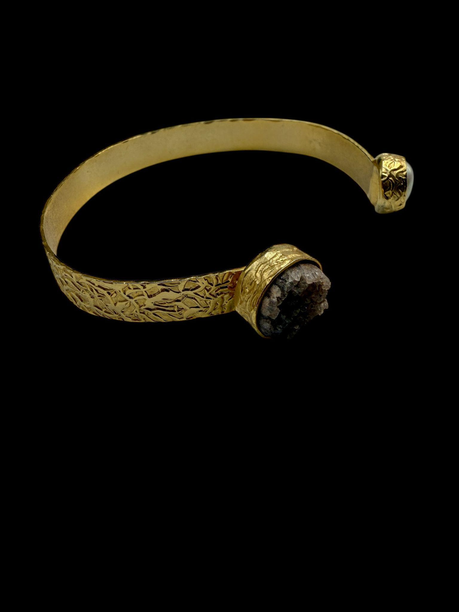 Gold Textured Open Cuff Bracelet | Raw Stone Adjustable Bangle | Handmade Boho Chic Statement Jewelry