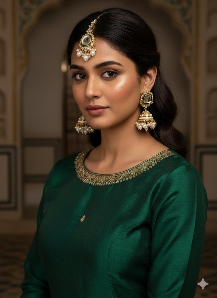 Kundan Pearl Jhumka Set with Maang Tikka | Traditional Indian Bridal Jewelry Set | Gold Plated Wedding Jewelry | Ethnic Festive Earrings