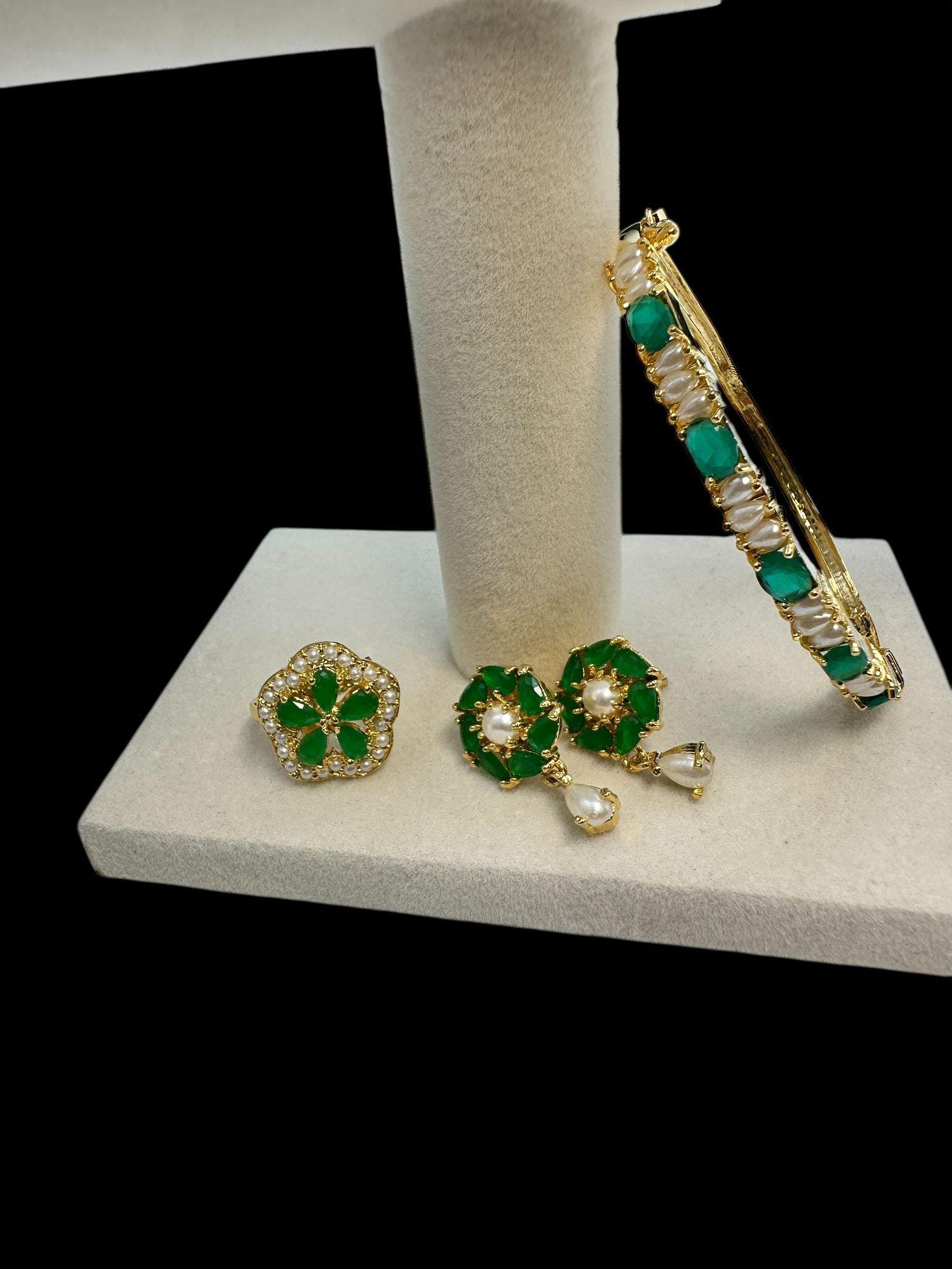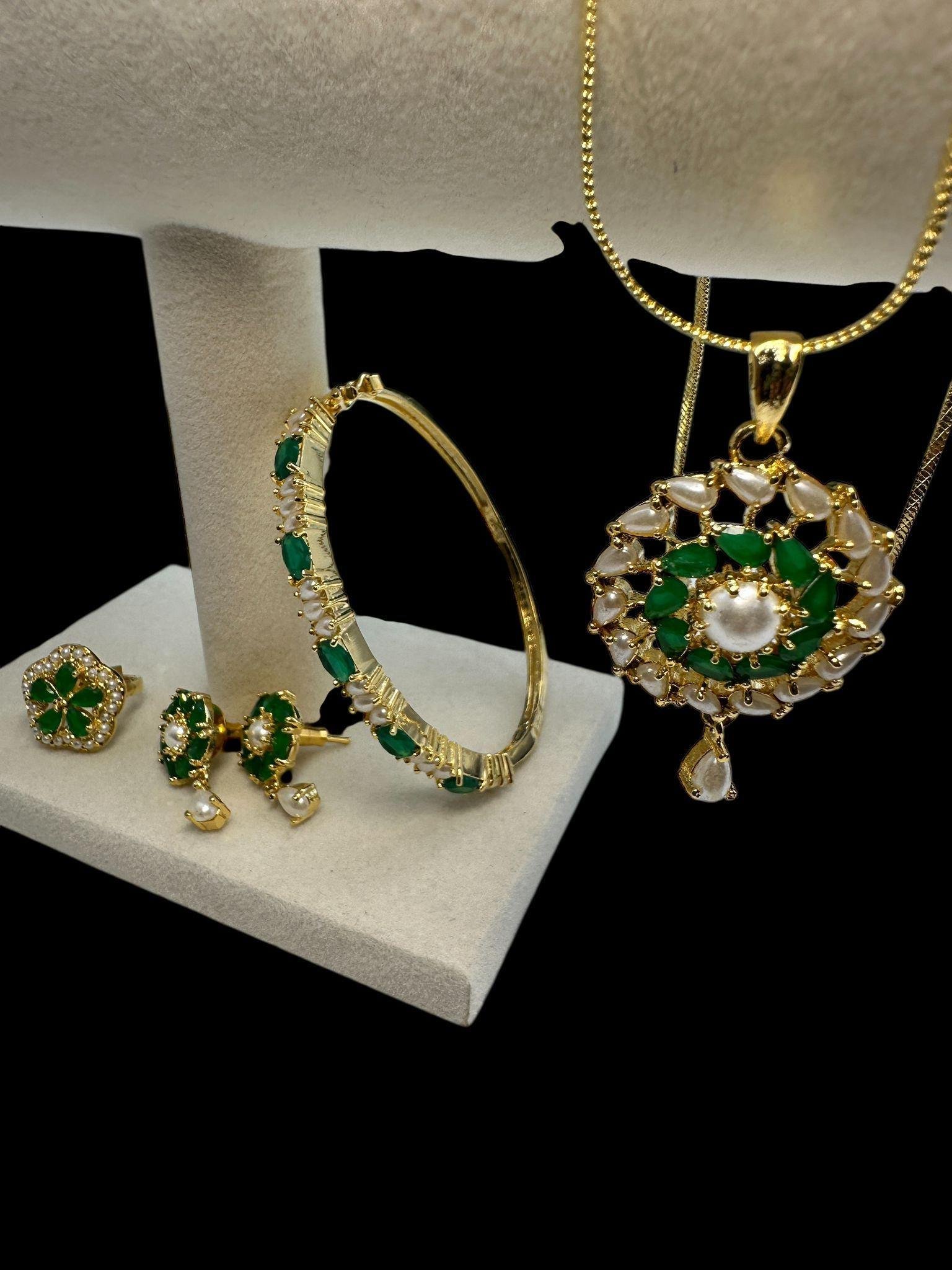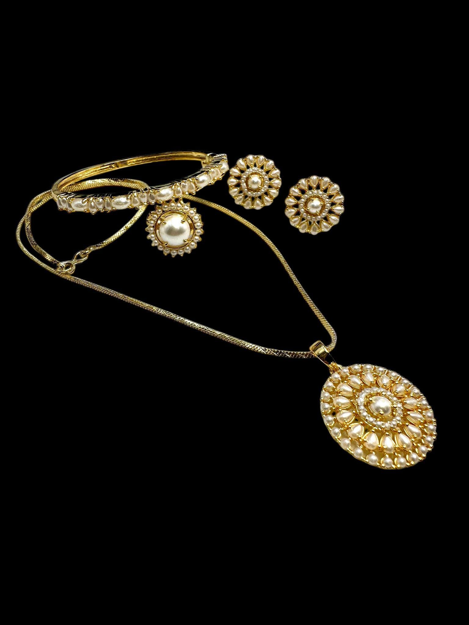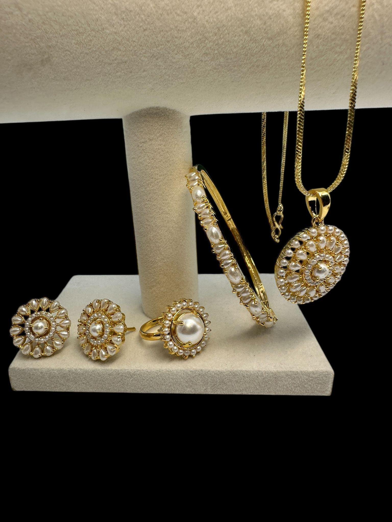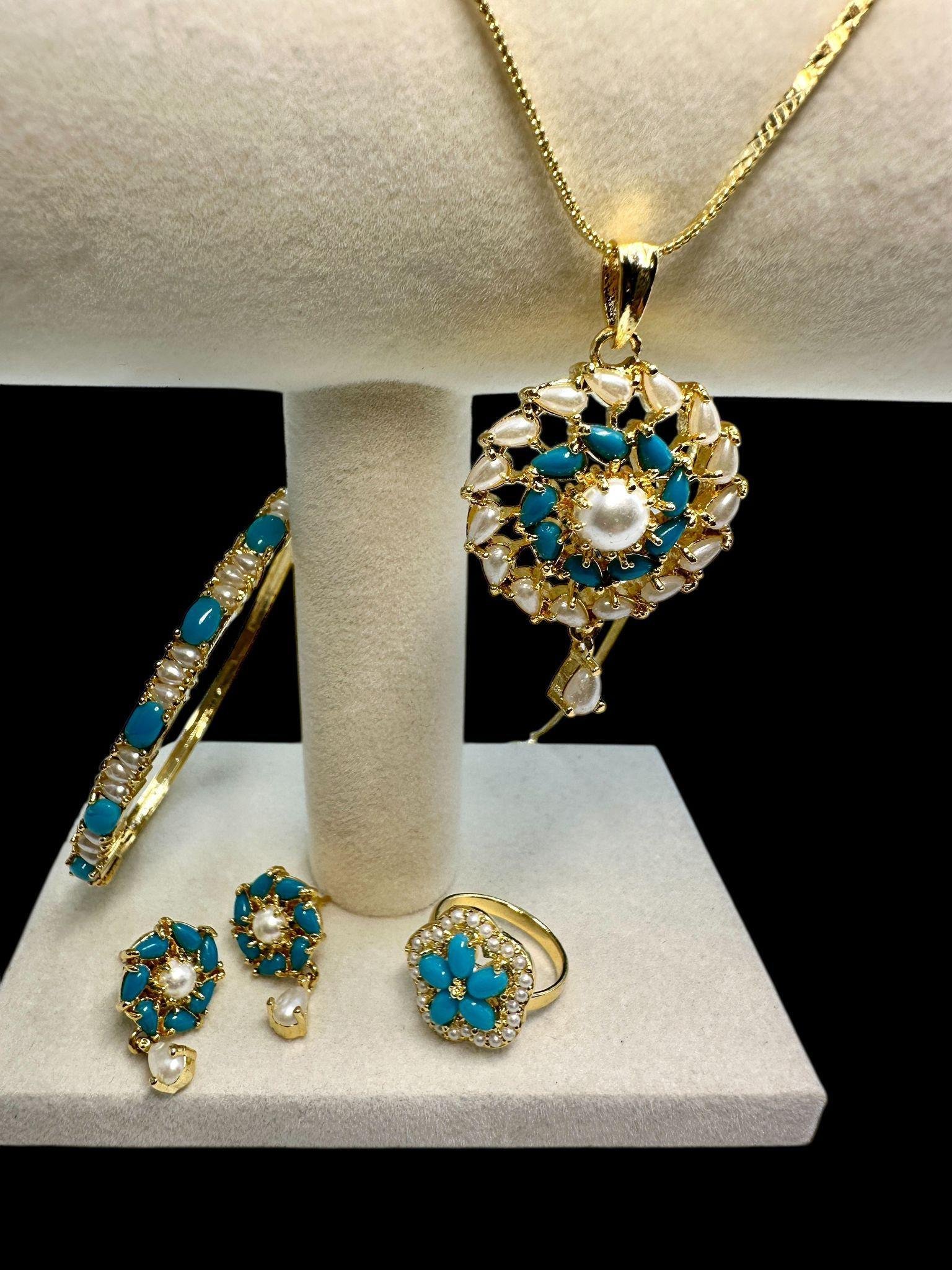 Mother of Pearl & Turquoise Jewelry Set – Gold Plated Elegance