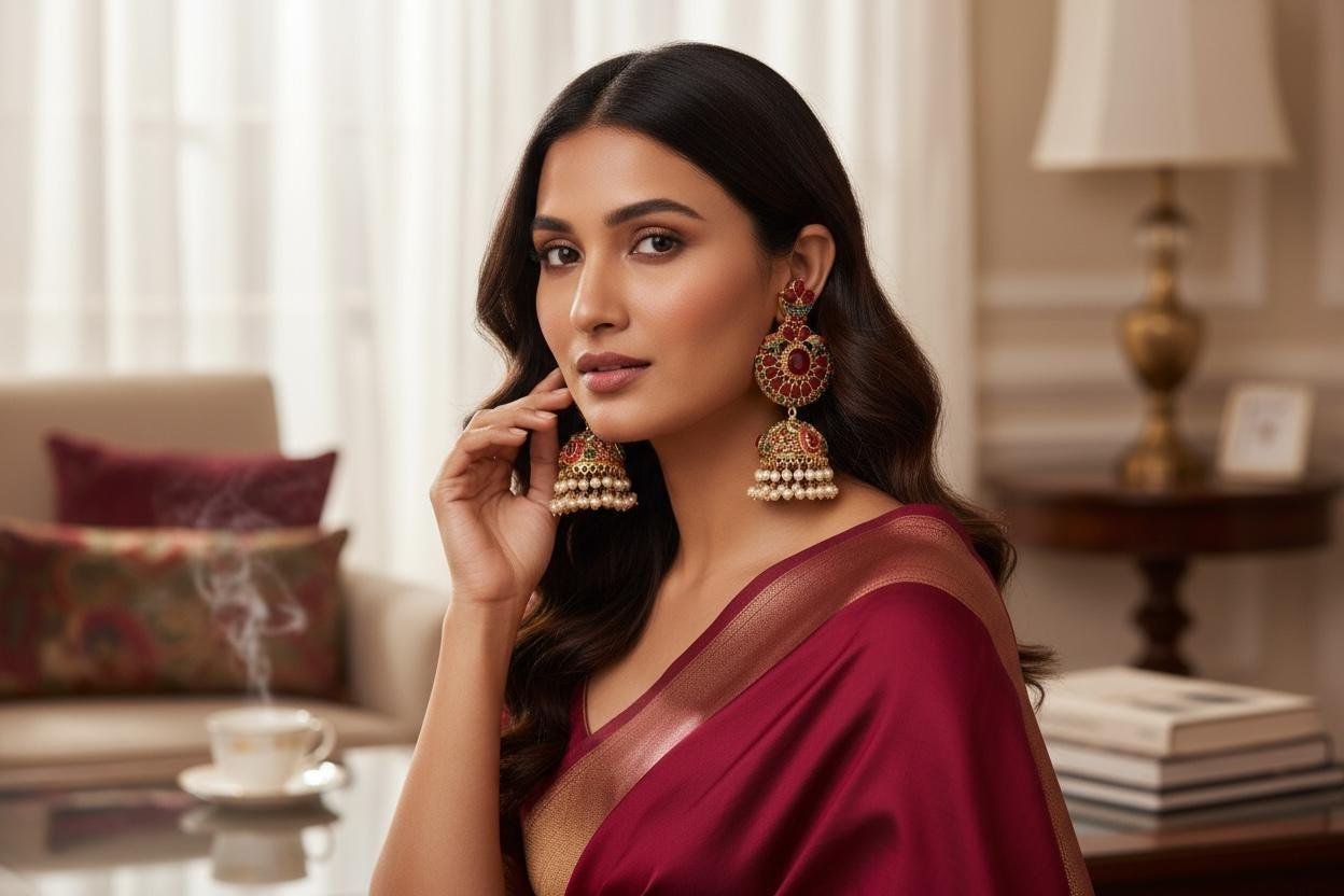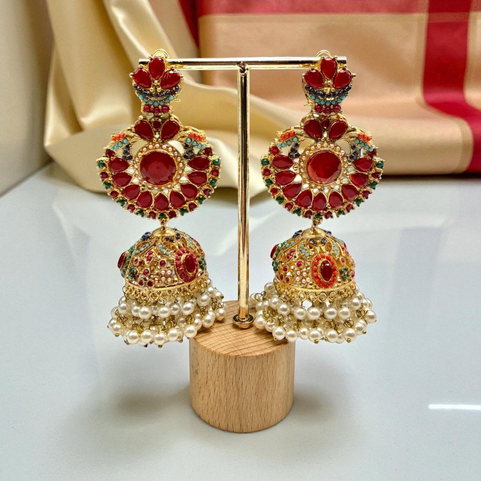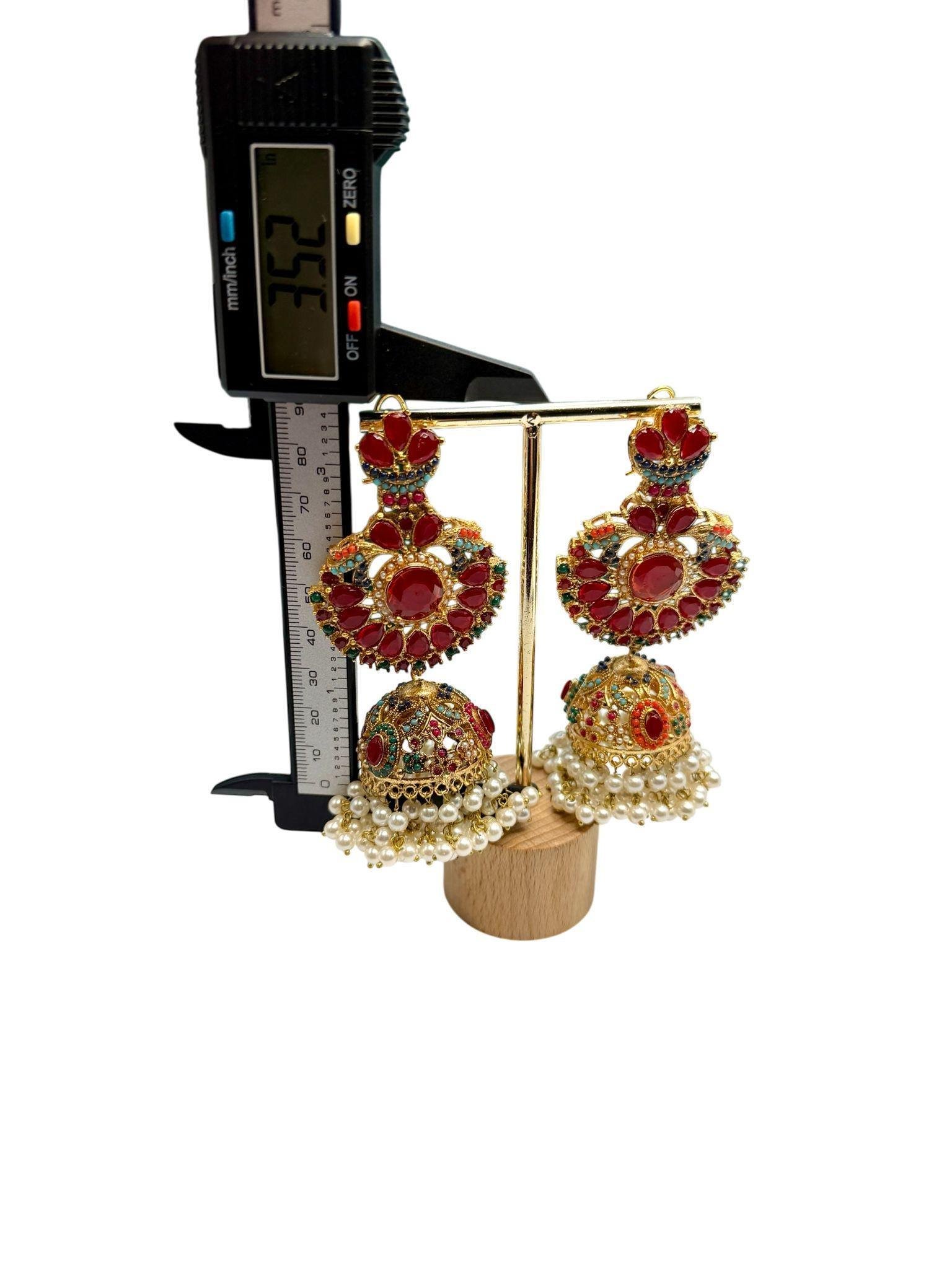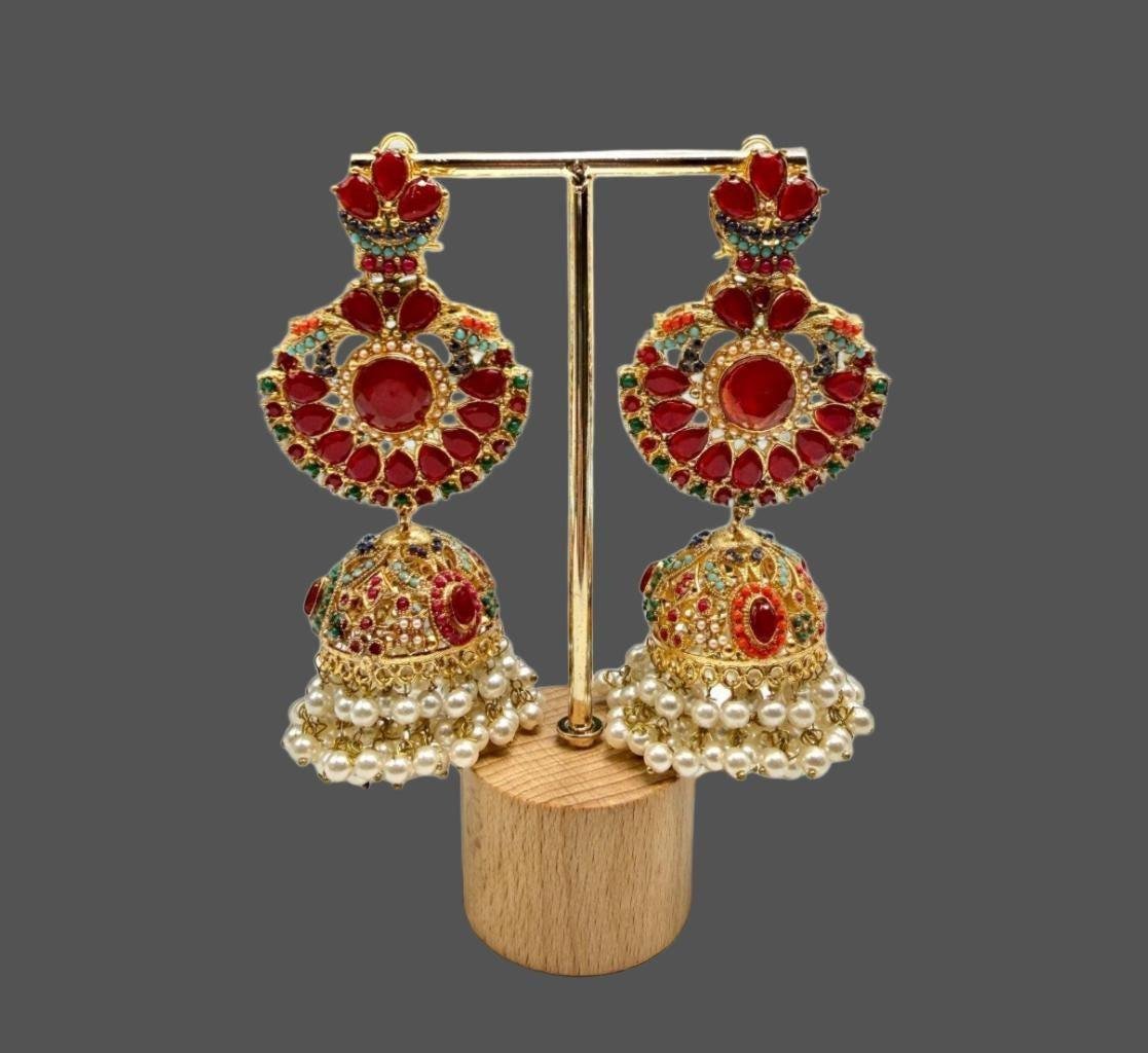 Red Jadao Jhumka Earrings | Gold Plated Pearl Dangle Earrings | Bridal Indian Traditional Jewelry