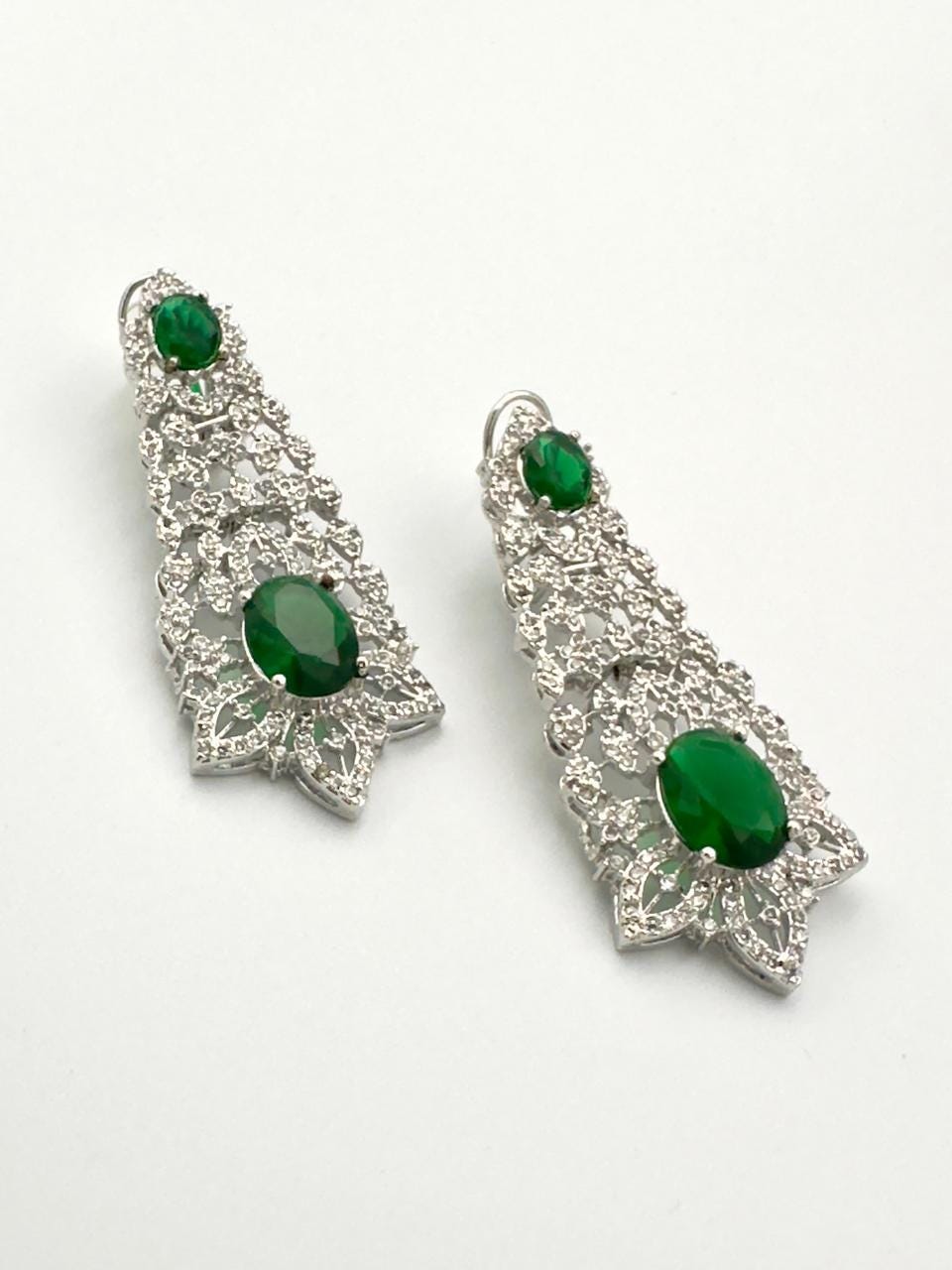 Silver Plated CZ Stone Emerald Green Earrings – Elegant Drop Dangle Jewelry for Women