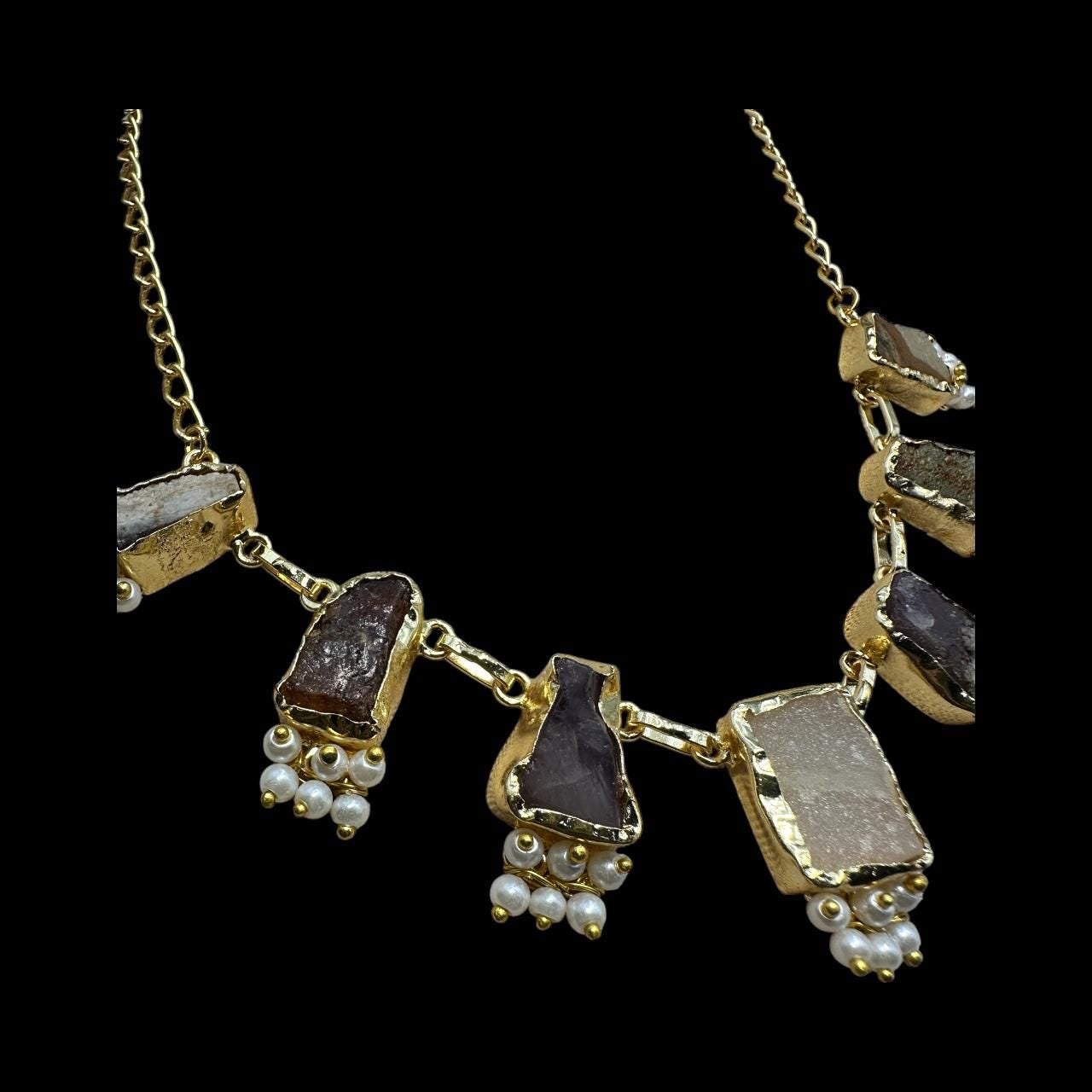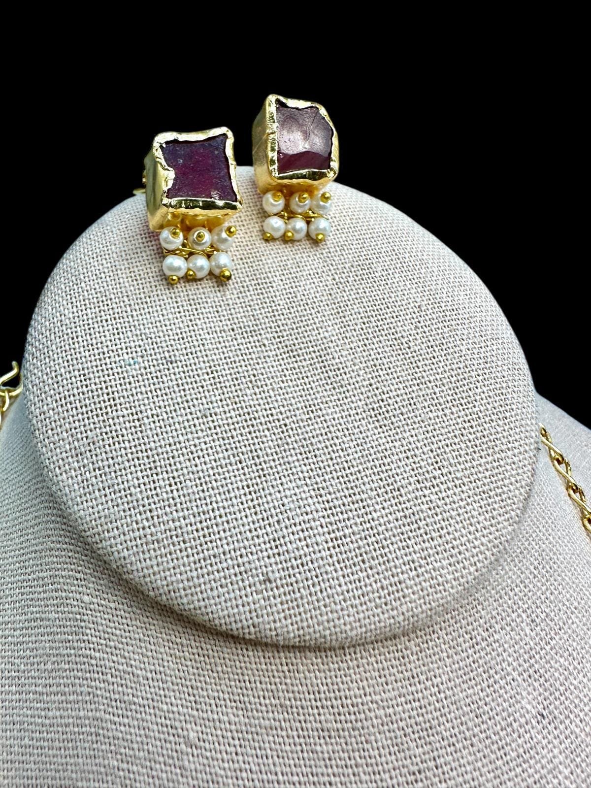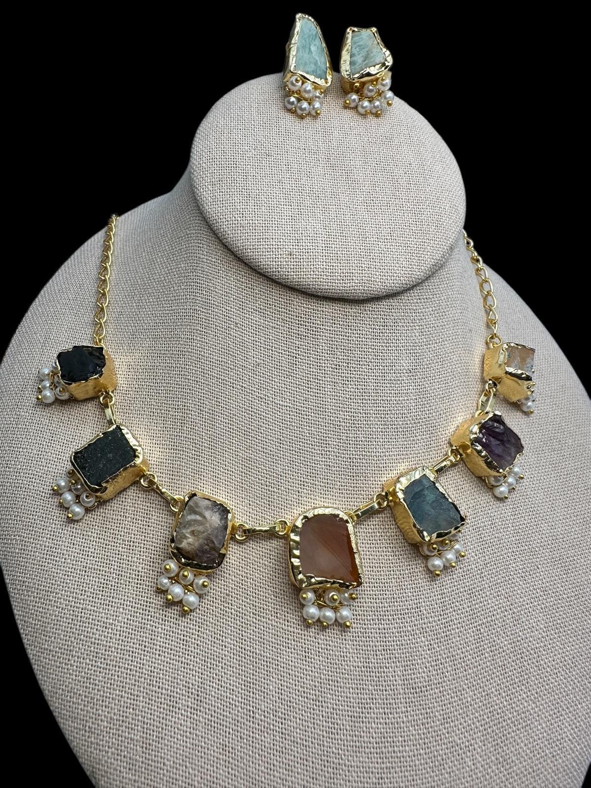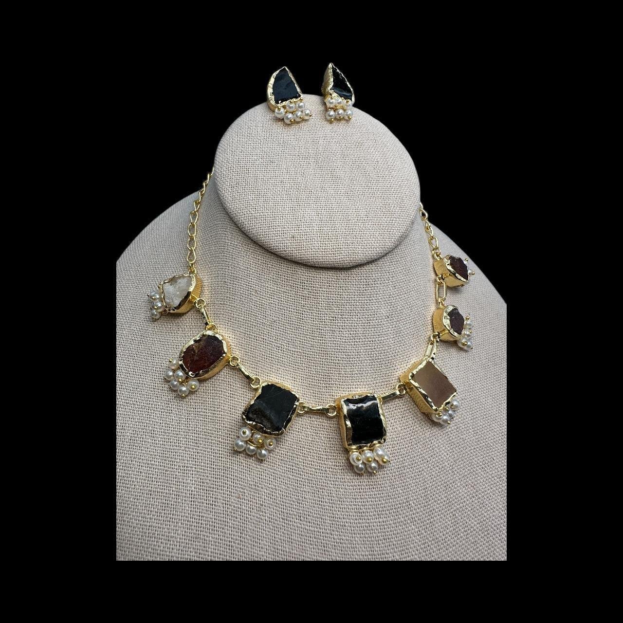 Turkish Necklace and Studs Set – Semi-Precious Stones with Pearls